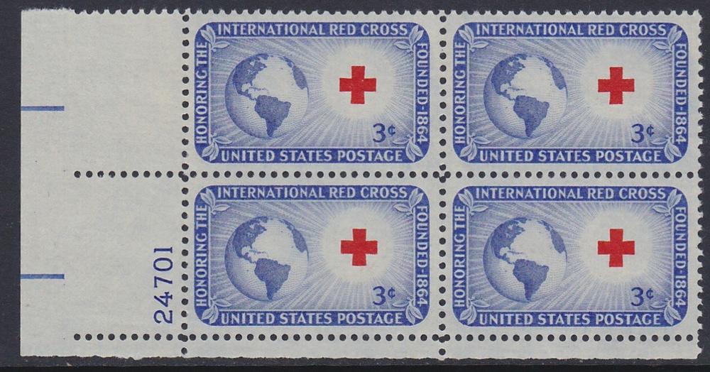 1016 Red Cross Plate Block MNH