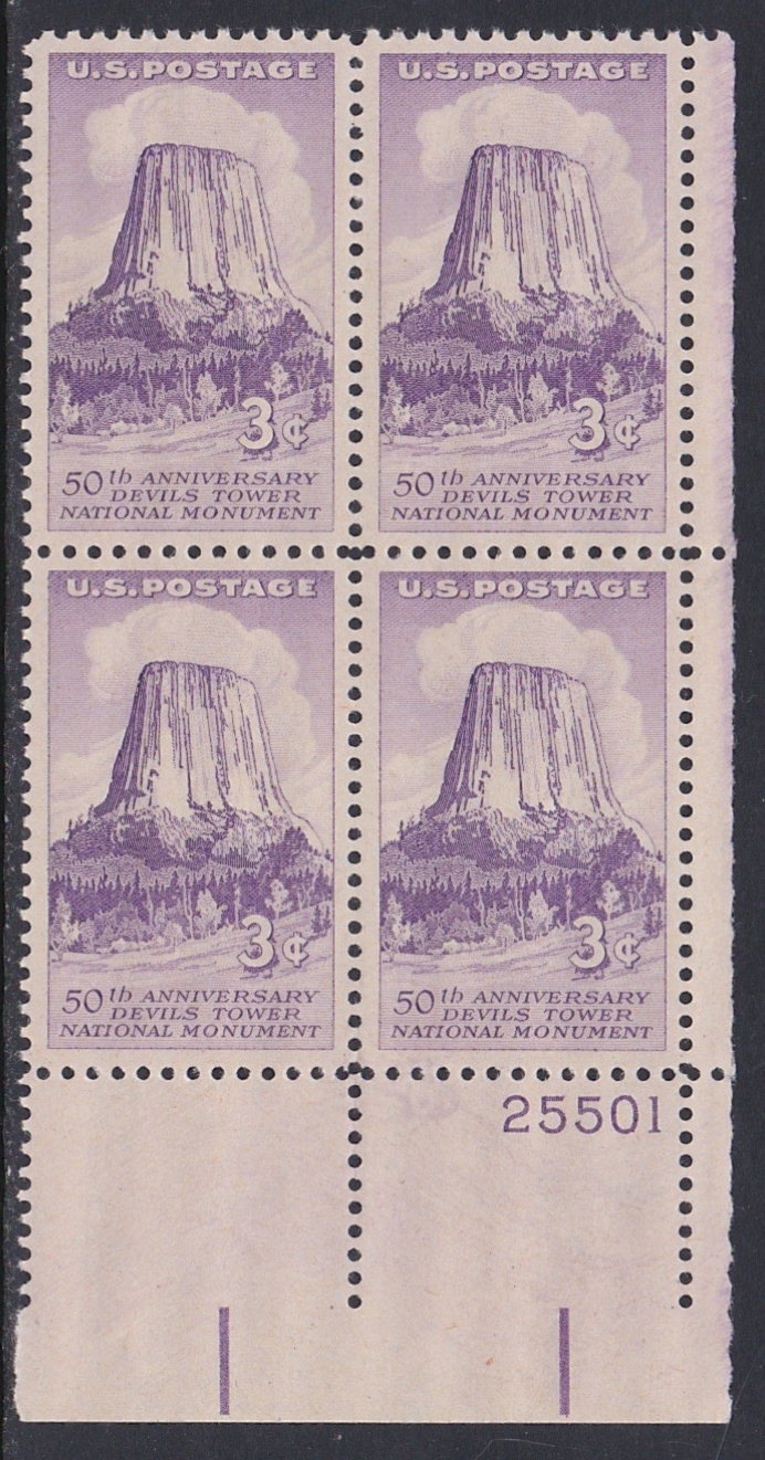1084 Devils Tower Plate Block MNH
