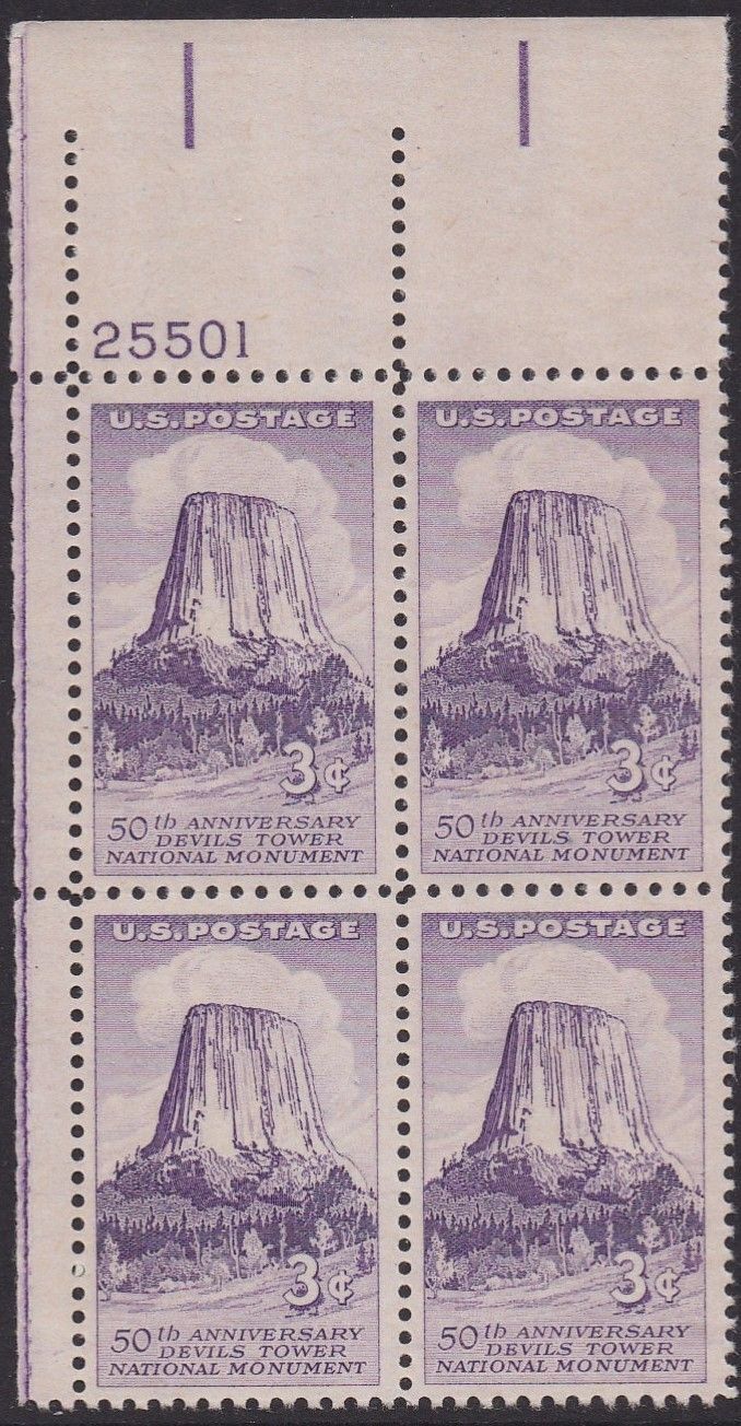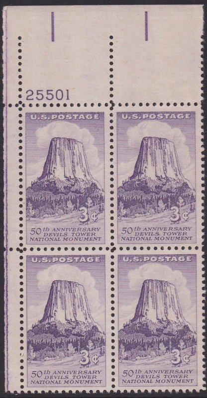 1084 Devils Tower Plate Block MNH