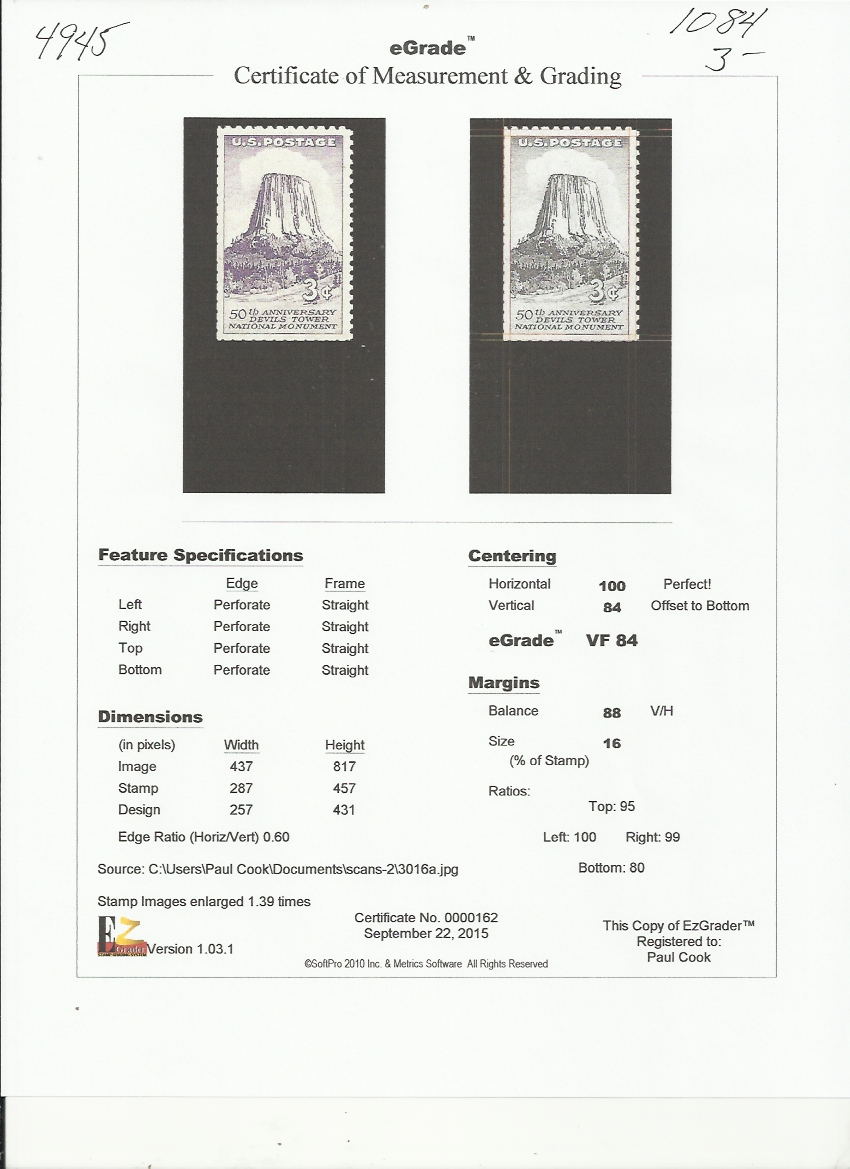 # 1084 MINT NEVER HINGED DEVIL'S TOWER VF+