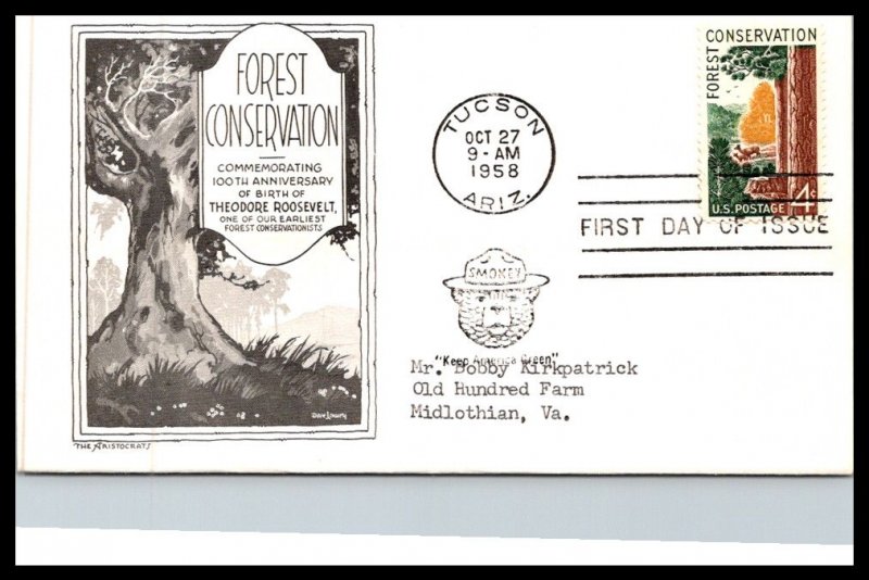 Offered is a first day cover for #1122 Forest Conservation - Aristocrat Cachet zoom in for condition - flap stuck inside envelope - NOTE SCANNER MAY CUT OFF TOP OR BOTTOM OF CACHET IN SCAN ONLY.