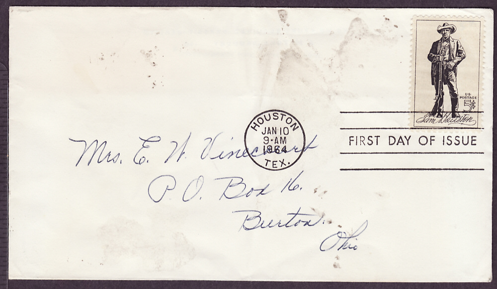 1242 Sam Houston uncacheted FDC