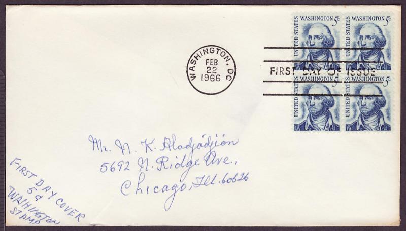 1283 George Washington block uncacheted FDC