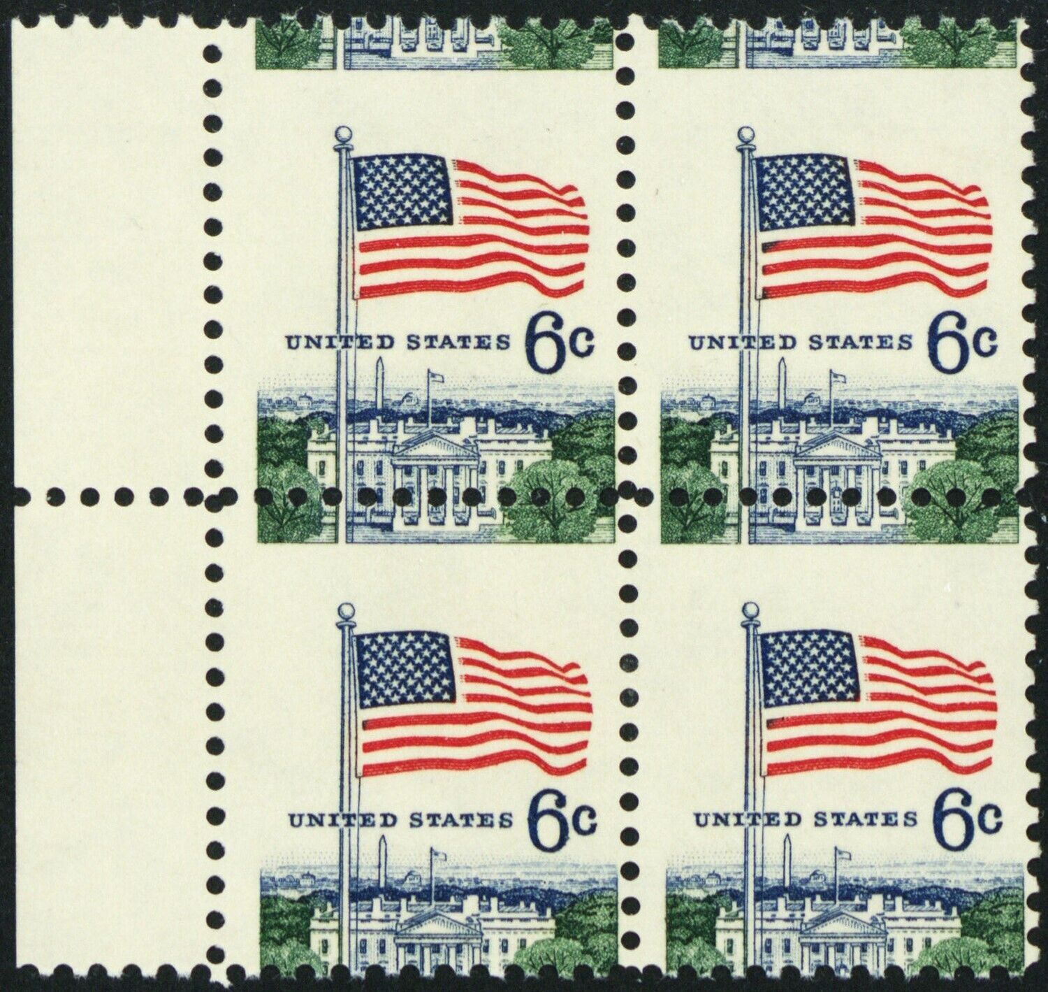 1338, MNH 6¢ Misperf Shift Freak Error Block - Stuart Katz
