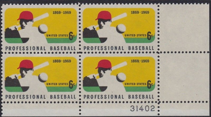 1381 Baseball Plate Block MNH