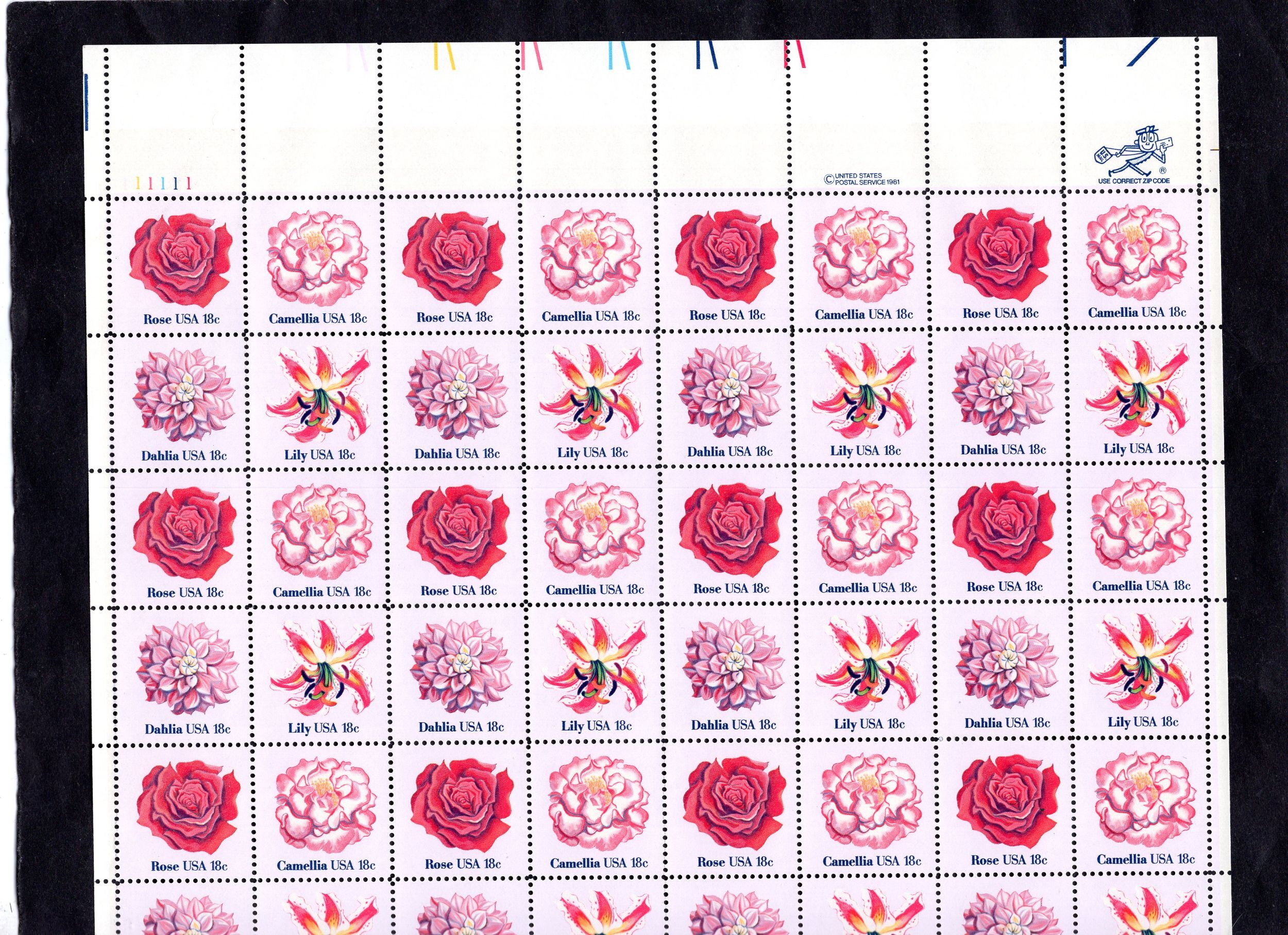1876-1879 Flowers, MNH sheet/48 UL-P (#111111)