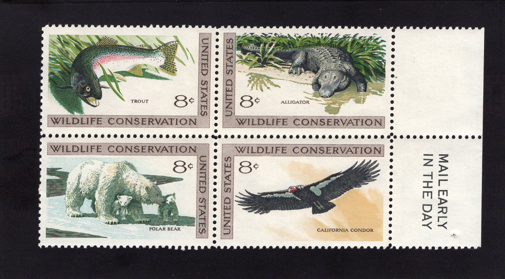 1427-1430 Wildlife Conservation, MNH Right Side Mail Early blk/4