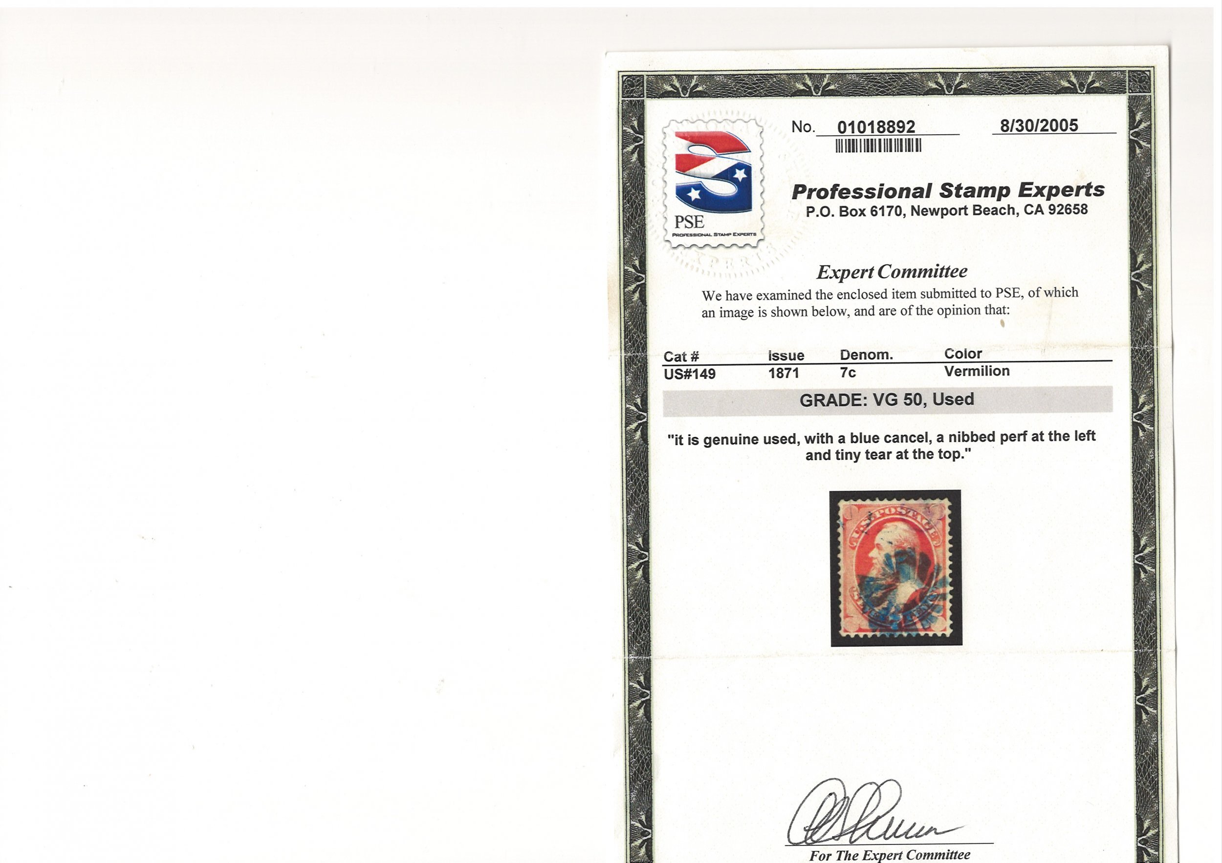 PSE Cert Unique cancellBuy with confidence. I Have been buying and selling on Hip and Hip stamps for the past twenty five years. Same name on Hip. Check out my Flawless feedback. Aps Member 230814