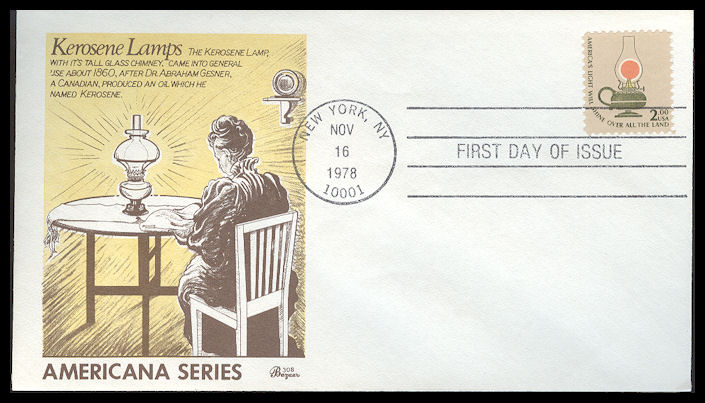 #1611 Kerosene Lamp first day cover by Bazaar. Postmark State: NY City: New York Year: 1978 Month: 11 Day: 16