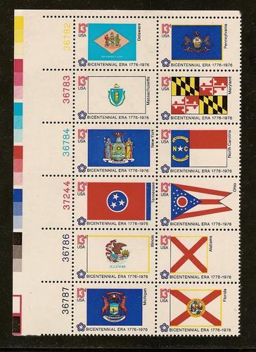 #1633-82 State Flags Plate Block NH