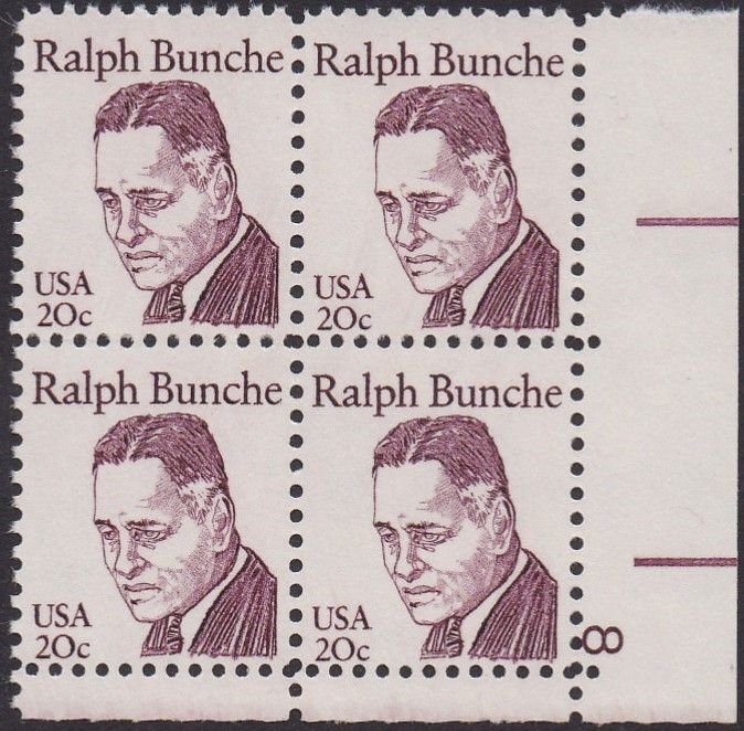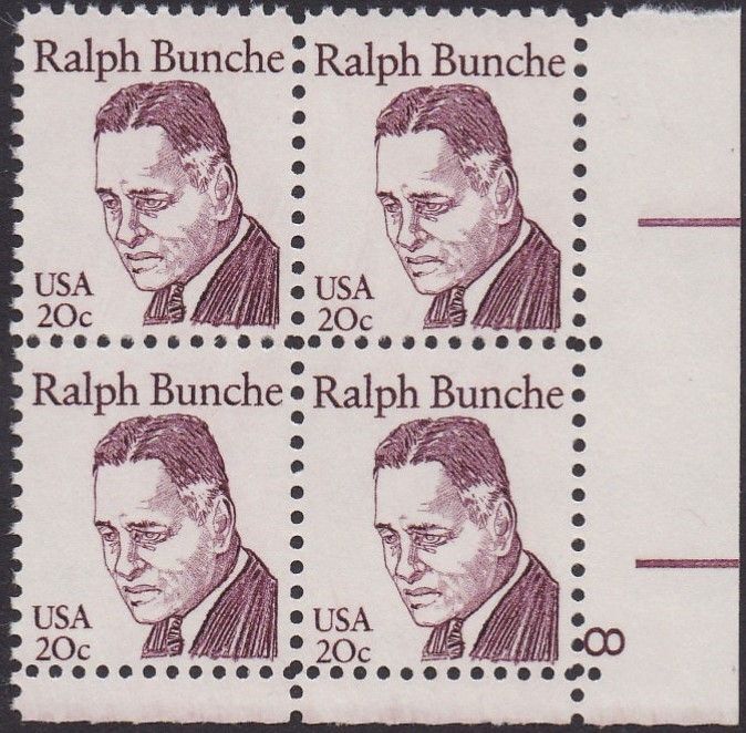 1860 Ralph Bunche Plate Block MNH