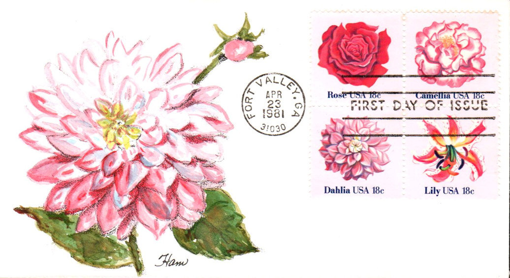 #1876-79 Flowers first day cover by Lois Hamilton. Postmark State: GA City: Fort Valley Year: 1981 Month: 4 Day: 23