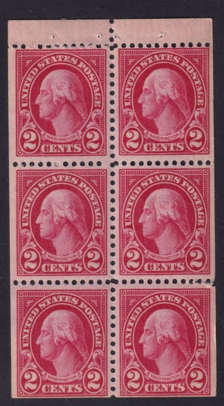 1927 Sc 634d MNH booklet pane of 6, with full original gum, 2c carmine (01