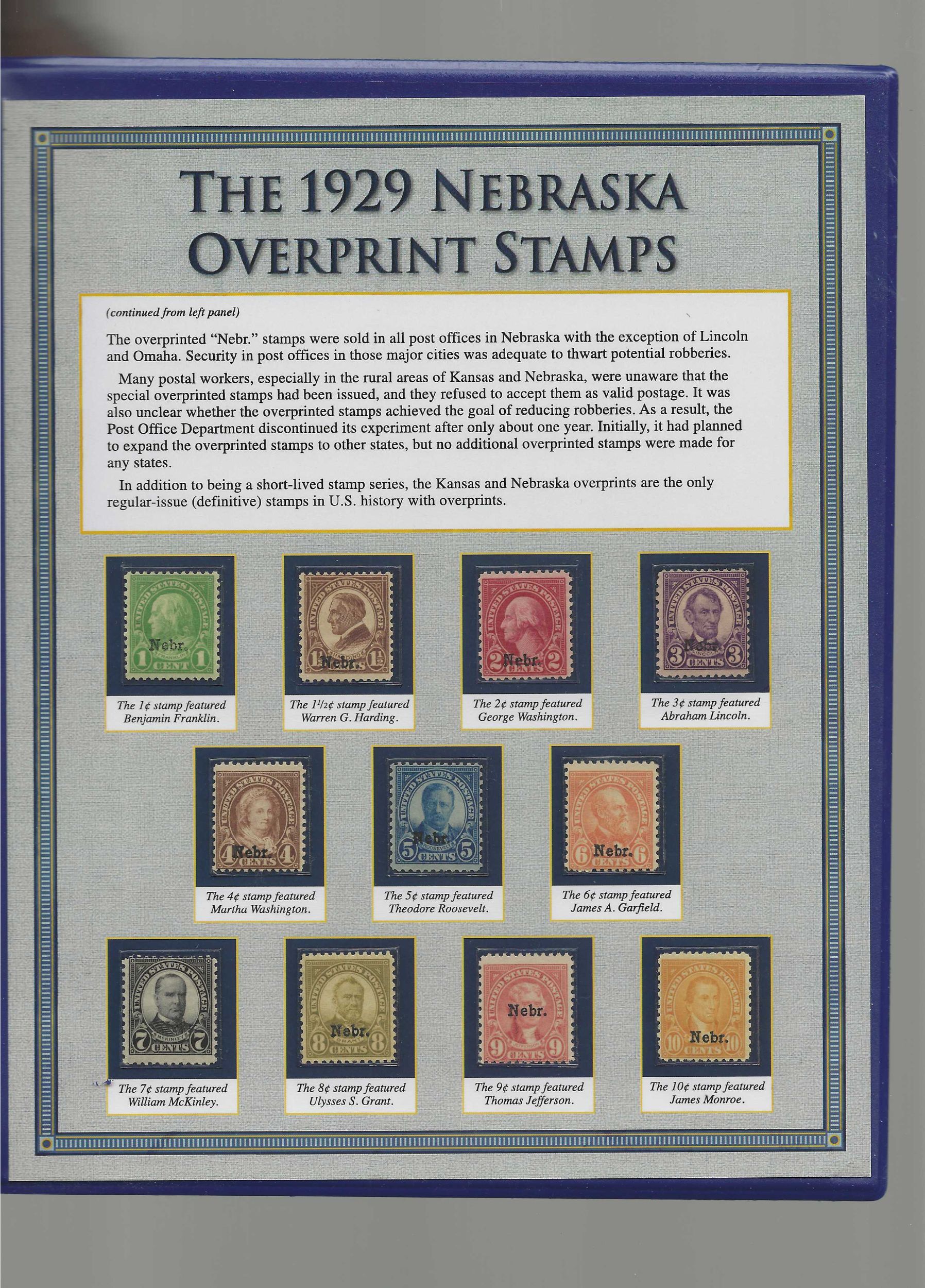 These sets are the only regular US definitive stamps in history with overprints.