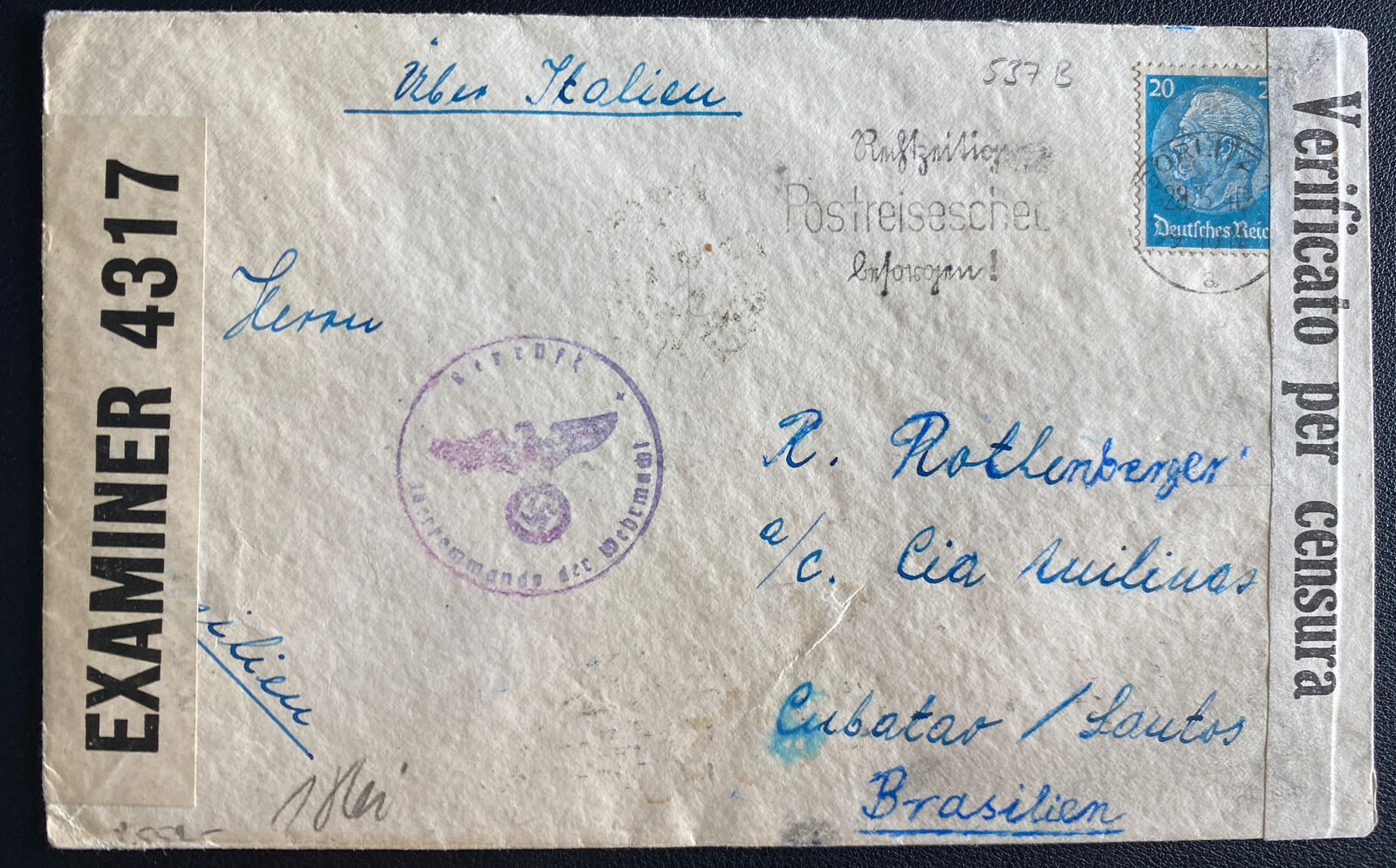 1940 Gorlitz Germnay Dual Censored Cover To Santos Brazil Israel Kleemaron
