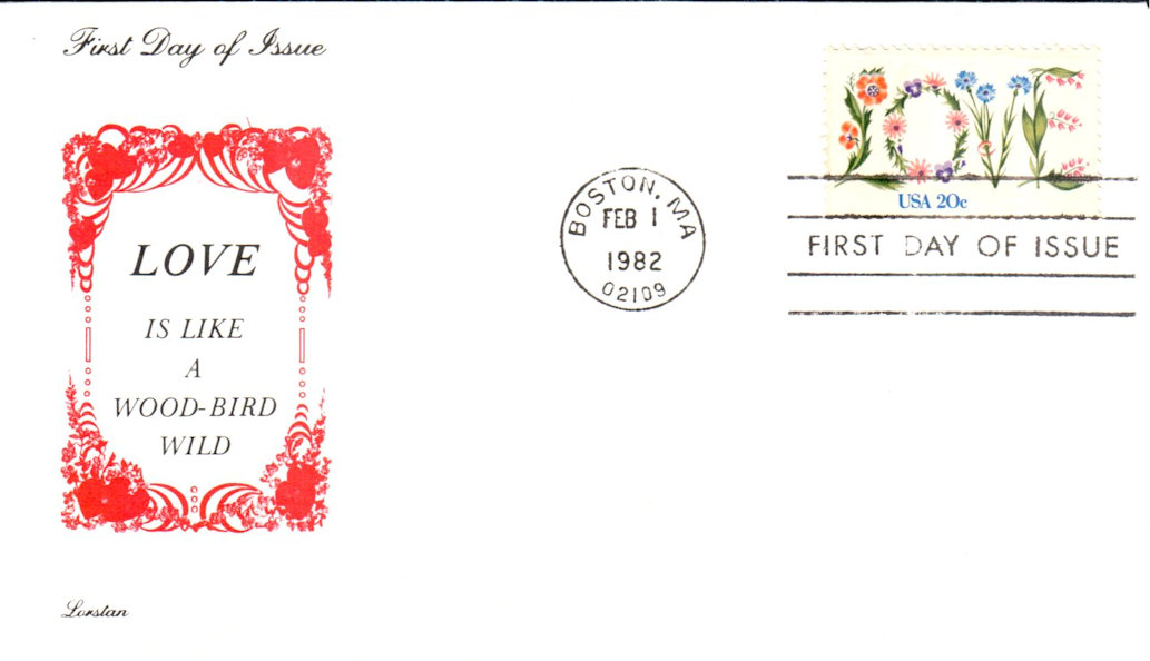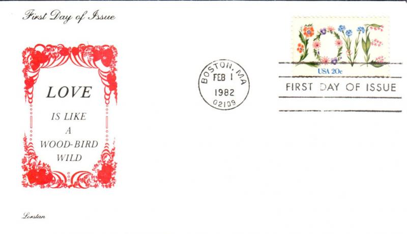 #1951 LOVE first day cover by Lorstan. Postmark State: MA City: Boston Year: 1982 Month: 2 Day: 1Seller Information