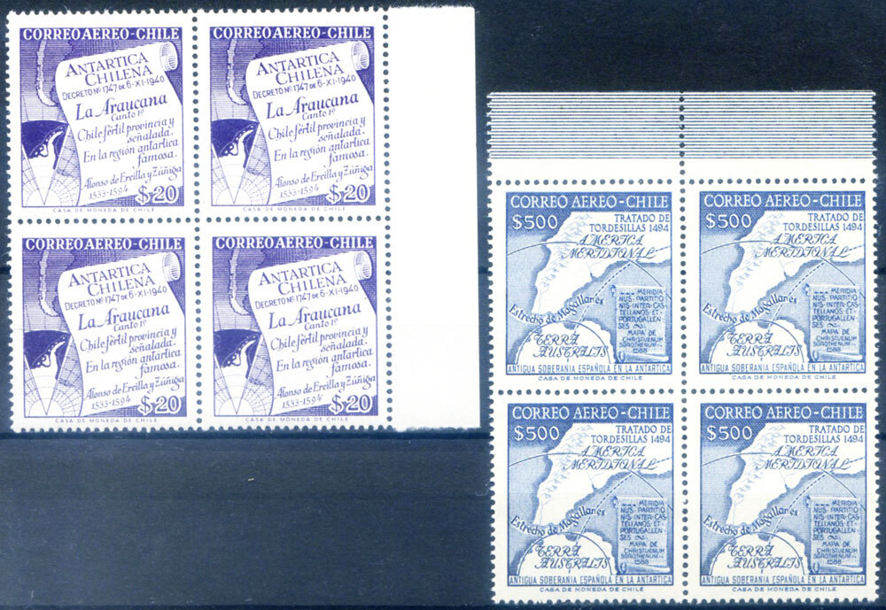 Chilean Antarctic. Blocks of four, sheet edge. Yvert 2019: A. 176/177 (**) - Euro 26,00.We list our items on different sites (Hip, Hip, Hipstamp, eBid, Oldthing). Do not buy the same item from different sites because each item is available in one piece only.