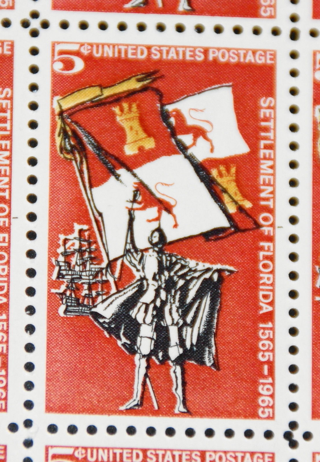 Full mint sheet of 50 - 5 cent stamps issued in 1965 to celebrate the 400th anniversary of the settlement of Florida, and the 1st permanent European settlement in the continental U.S., St. Augustine, Florida. The st ... Read More