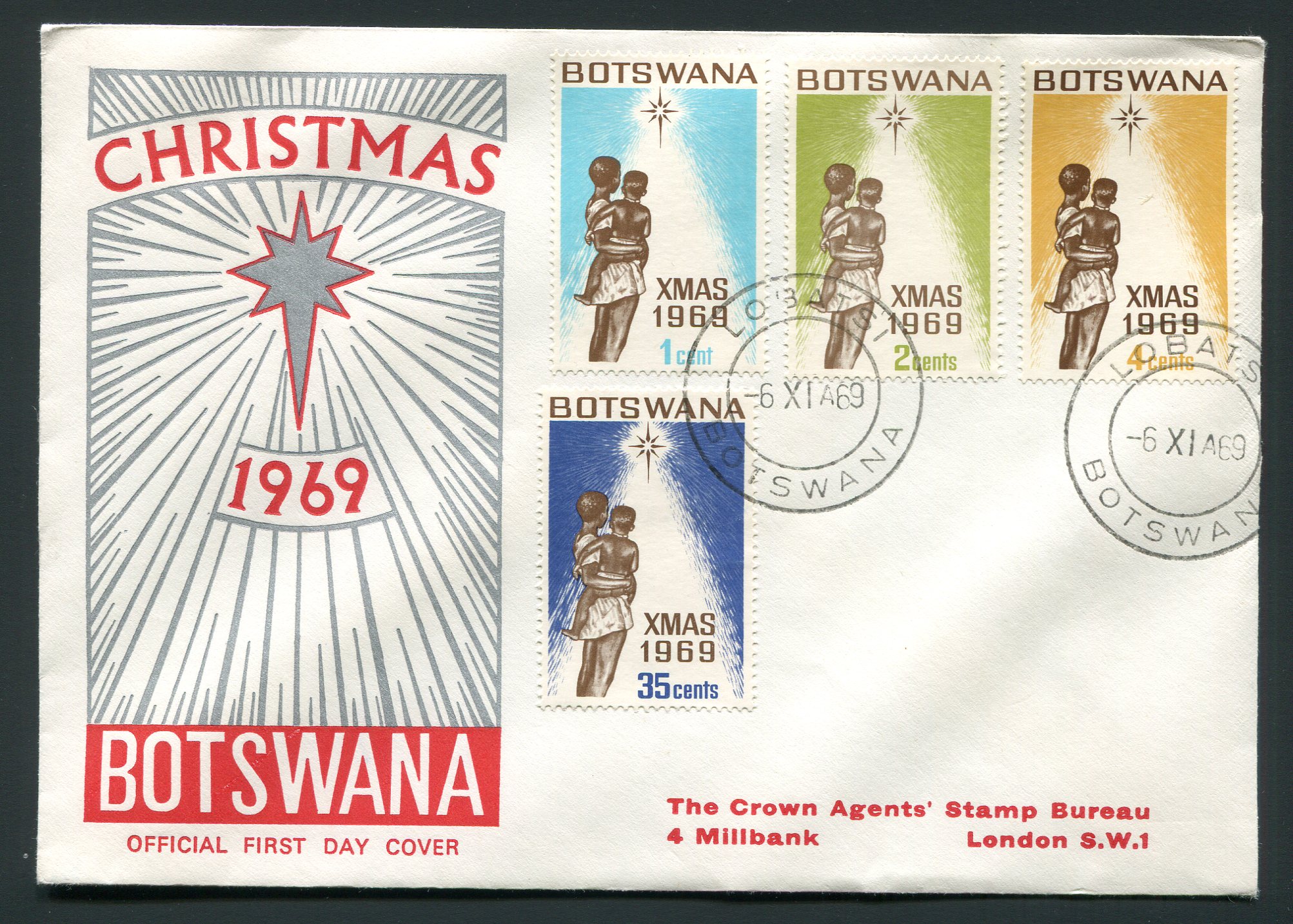 1969 Botswana Multi Franked Christmas FDC