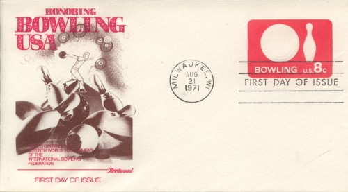 1971 Bowling Stamped Envelope (Scott U563) Fleetwood Cachets - First Day of Issue. Unaddressed, like new condition, hard to find cachet maker.