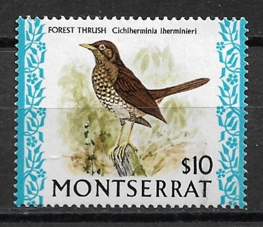 1974 Montserrat 243A $10 Forest Thrush MH