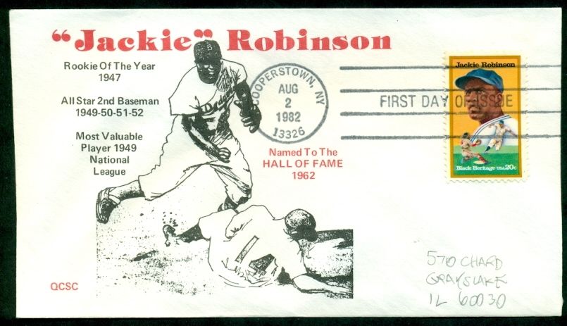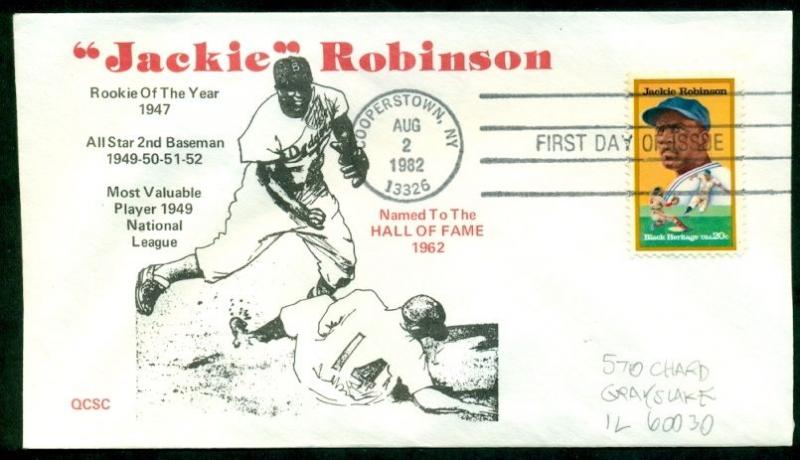 1982 JACKIE ROBINSON WITH QCSC CACHET FDCAttention International Buyers!