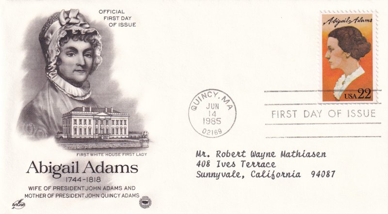 1985, Honoring Abigail Adams, Art Craft/PCS, FDC (E12470)