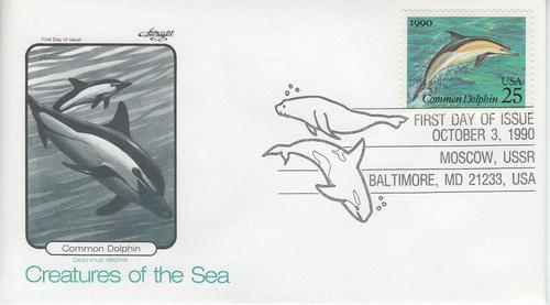 1990 Dolphin - Creatures of the Sea (Scott 2511) - Artmaster Cachet FDC.Sales History