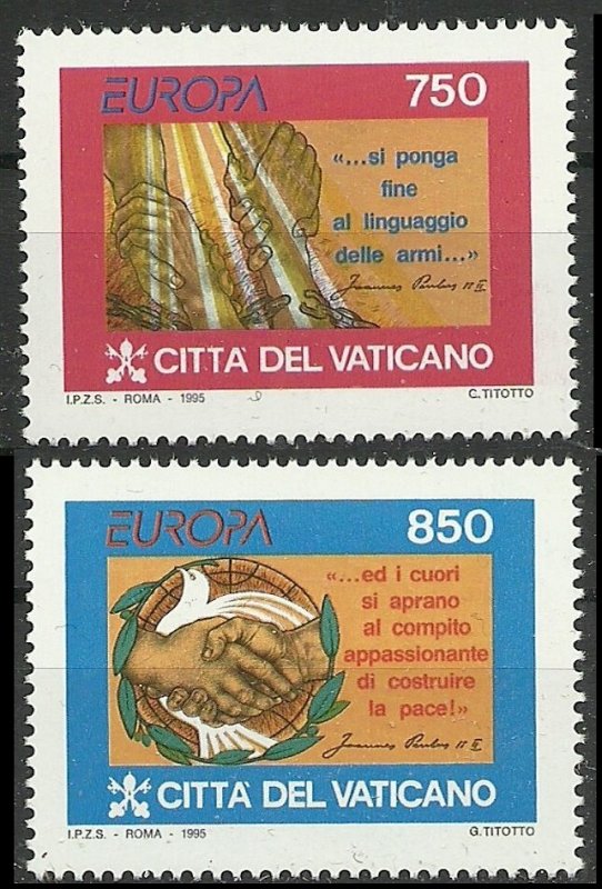 1995 Vatikan City 1141-1142 Europa Cept All items state MNH (**) if the state changes will be the description. Numbering according to the Michel catalog.