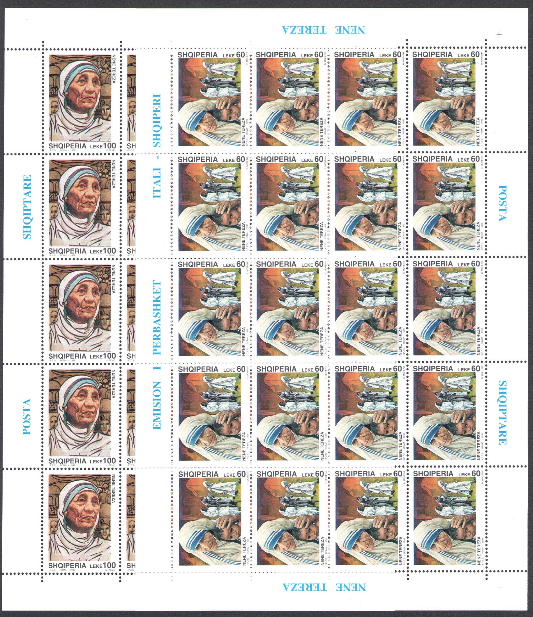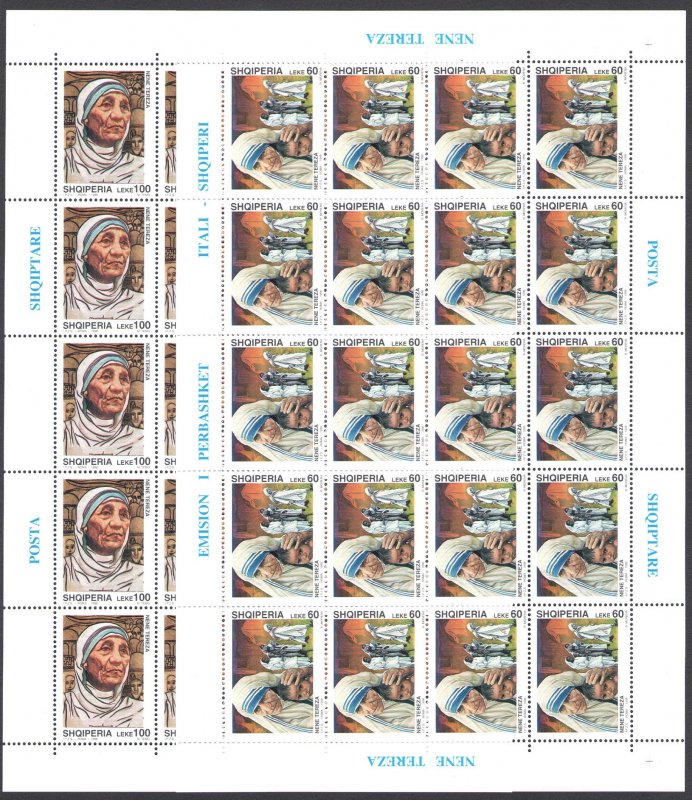 1998 Albania Mother Teresa of Calcutta Joint Issue - 2 val in 20 MNH Minifogli**