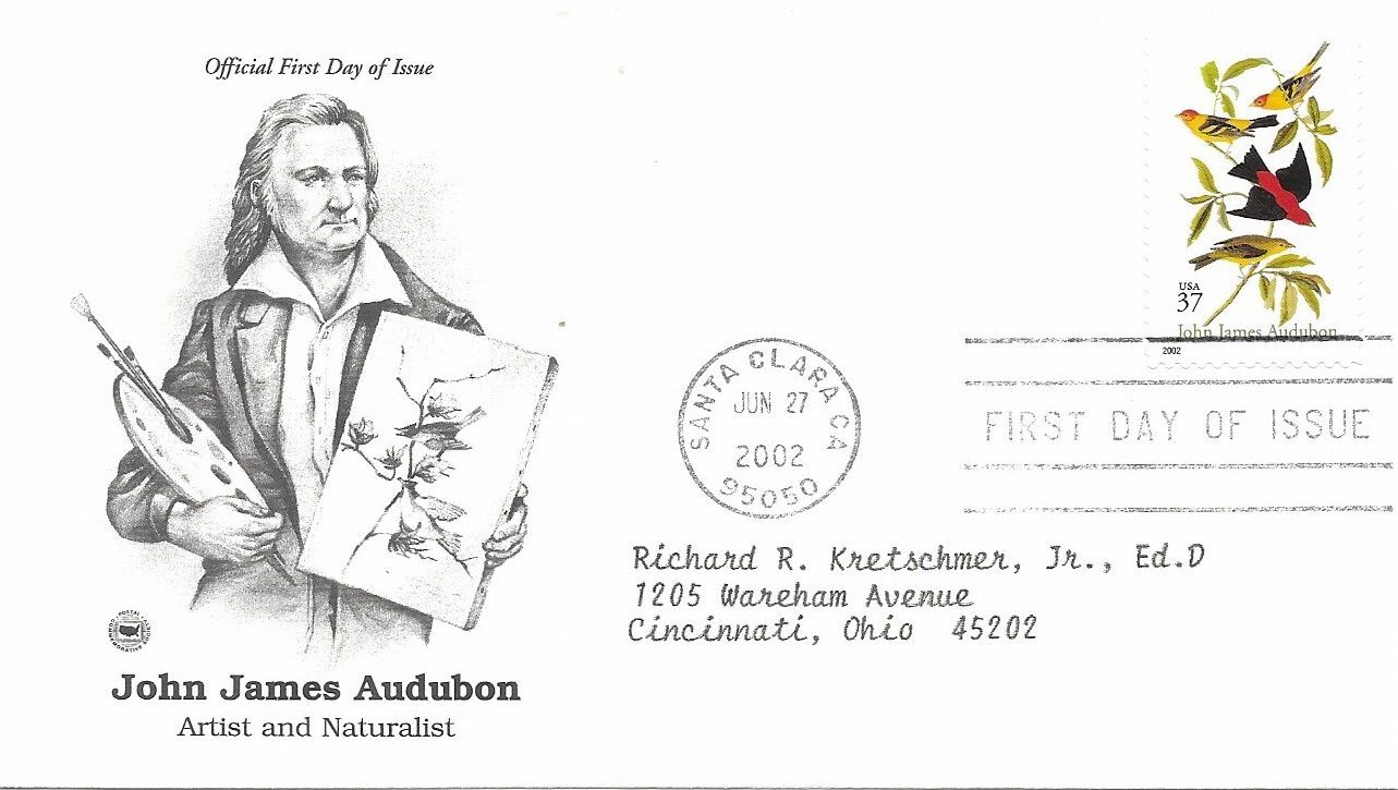 2002 FDC, #3650, 37c John James Audubon, 2 diff. cachets