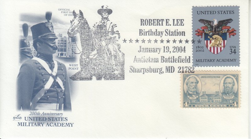 2004 Robert E. Lee - Birthday - Artcraft West Point Cachet Lee & West Point stamps (Scott 3560) Event Cover.. UnAddressed .Sales History