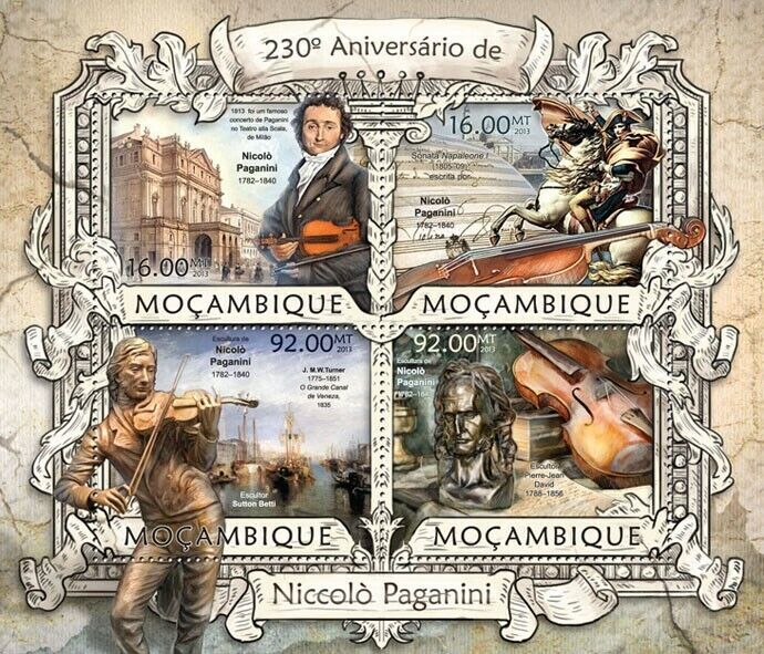 2013 MOZAMBIQUE MNH. NICCOLO PAGANINI | Yvert&Tellier Code: 5287-5290 | Michel Code: 6394-6397 | Scott Code: 2783Seller Information