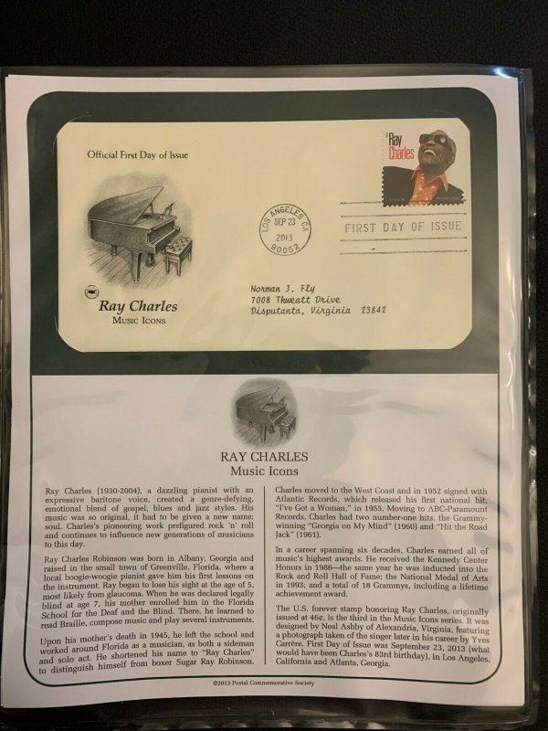 2013 ray Charles stamp FDCsOffers History