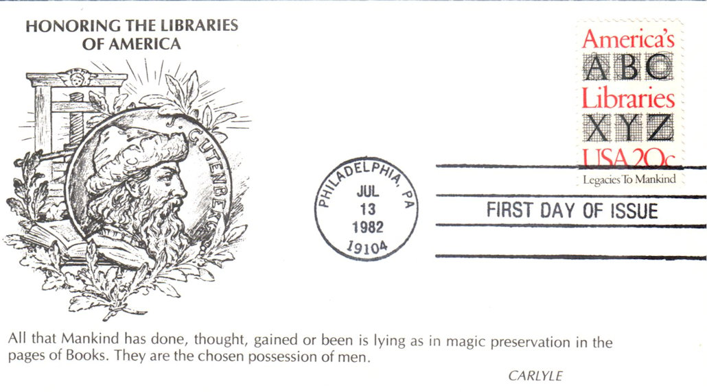 #2015 American Libraries first day cover by KMC Venture. Postmark State: PA City: Philadelphia Year: 1982 Month: 7 Day: 13