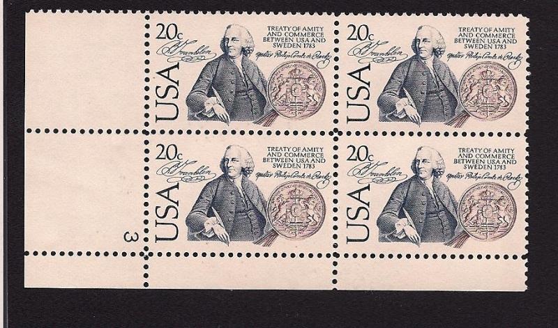 20¢ plate block US - Sweden - MNHSeller Information