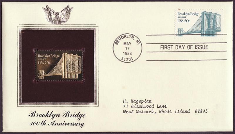2041 Brooklyn Bridge gold stamp FDC