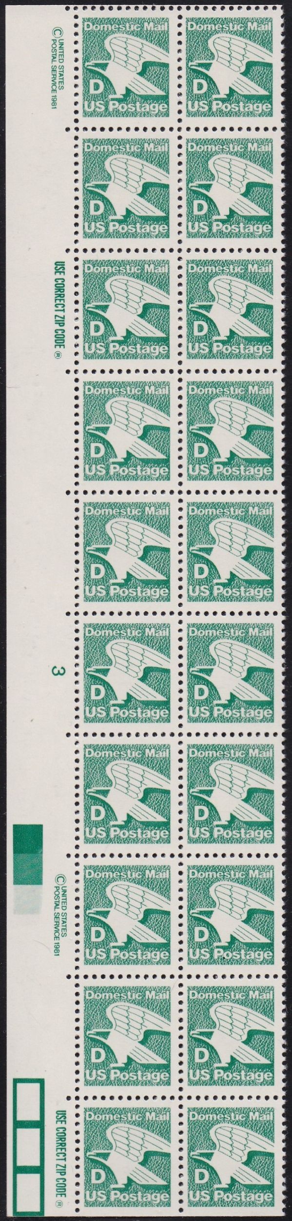 2111 Eagle plate Strip MNH