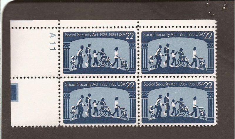 2153 - Plate bolck of four 22¢ - Social Security Act, 50th Anniv. - MNH