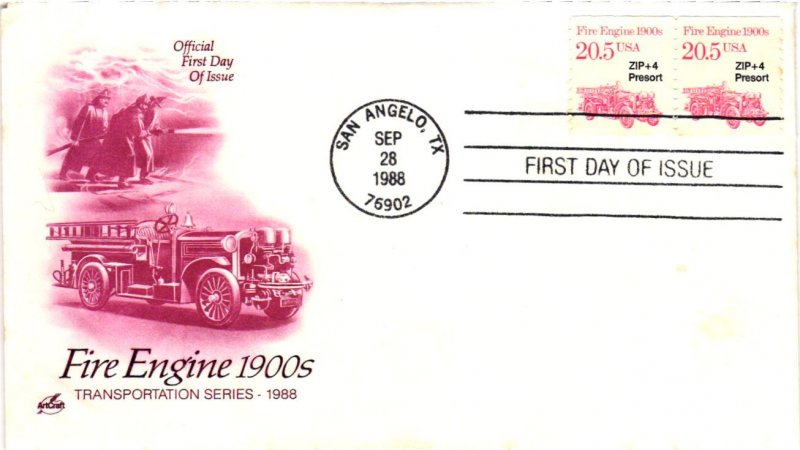 Offered is a first day cover for #2264 Fire Engine 1900’s - Artcraft Cachet - zoom in to determine the cover condition –NOTE SCANNER MAY CUT OFF TOP OR BOTTOM OF CACHET IN SCAN ONLY.