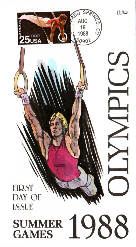 #2380 Summer Olympics first day cover by Fred Collins. Postmark State: CO City: Colorado Springs Year: 1988 Month: 8 Day: 19