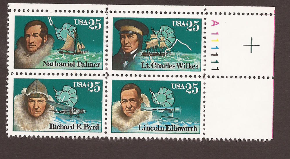 Plate block of four 25¢ - Antarctic Explorers - MNHSeller Information