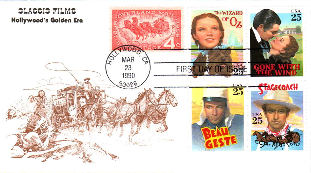 #2445-48 Classic Films first day cover by KMC Venture. Postmark State: CA City: Hollywood Year: 1990 Month: 3 Day: 23