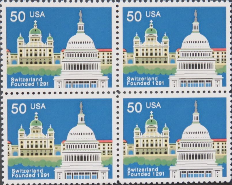 2532 50c Switzerland joint issue, Blk of 4