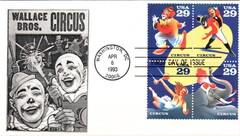 #2750-53 Circus first day cover by S & T Cachets. Postmark State: DC City: Washington Year: 1993 Month: 4 Day: 6Seller Information