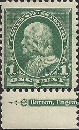 # 279 Deep Green Mint Hinged Ben Franklin