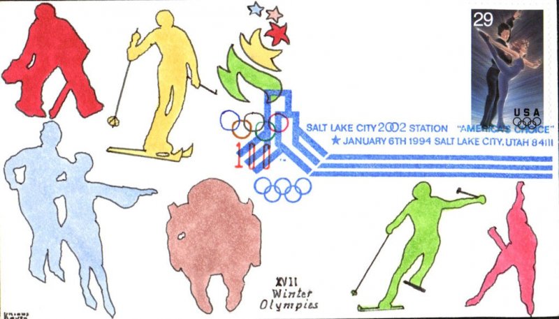 #2809 Figure Skating - Winter Olympics first day cover by Kribbs Kovers. Postmark State: UT City: Salt Lake City Year: 1994 Month: 1 Day: 6Seller Information