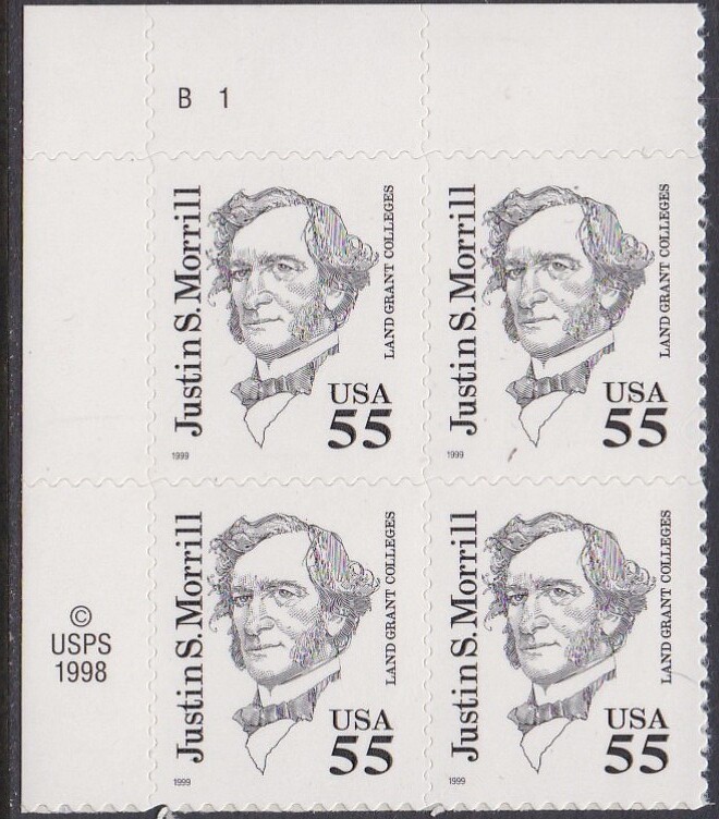 2941 Justin Morrill Plate Block MNH