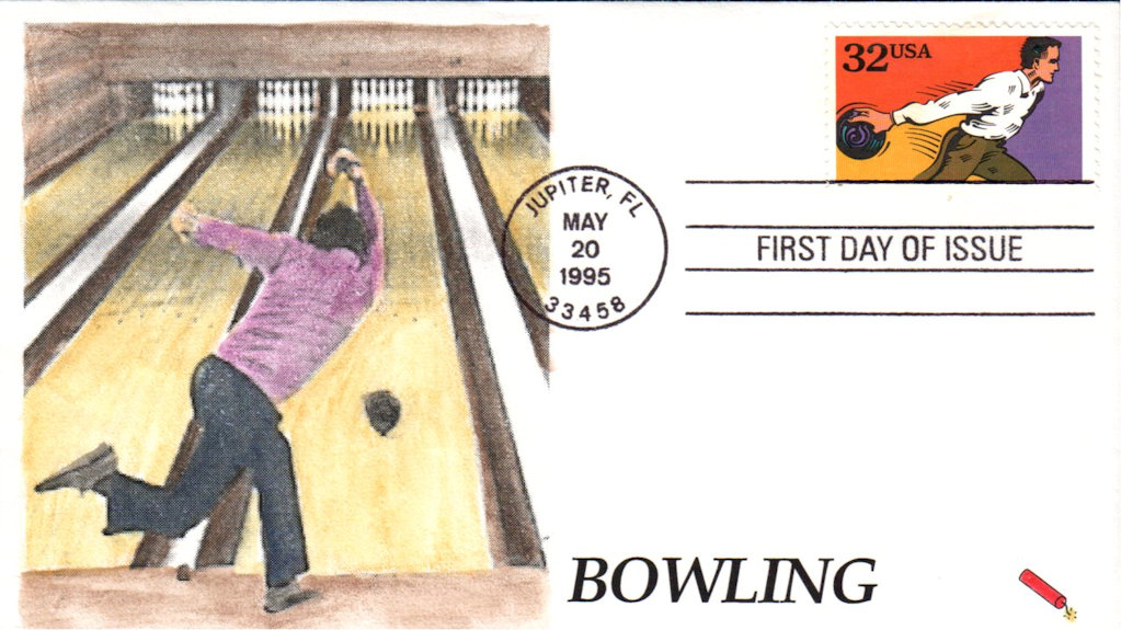 #2963 Bowling - Recreational Sports first day cover by Dynamite Covers. Postmark State: FL City: Jupiter Year: 1995 Month: 5 Day: 20