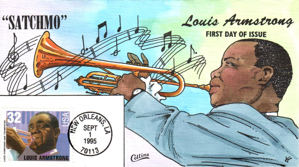 #2982 Louis Armstrong first day cover by Fred Collins. Postmark State: LA City: New Orleans Year: 1995 Month: 9 Day: 1Seller Information